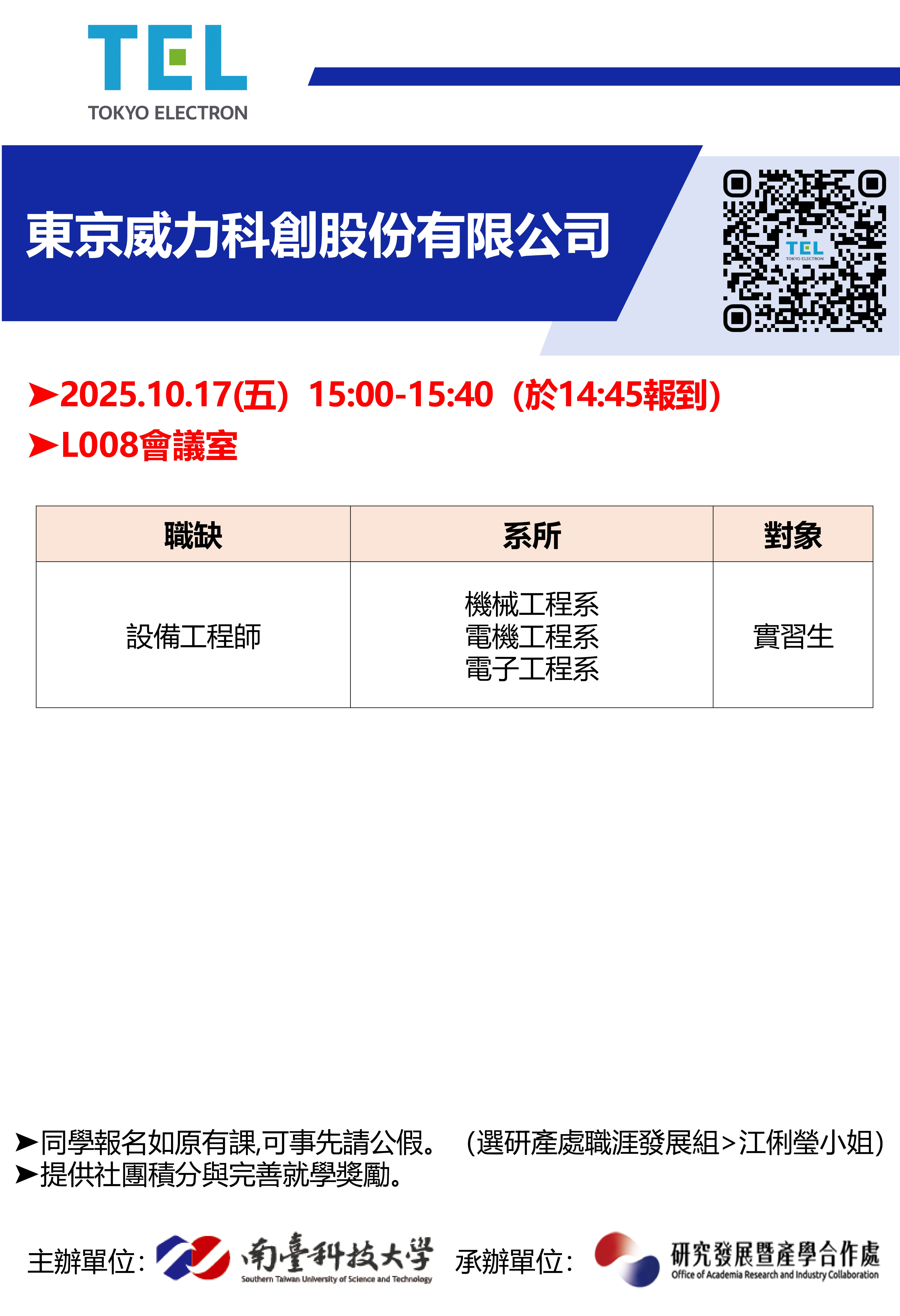 【114-1】徵才說明會-東京威力科創股份有限公司