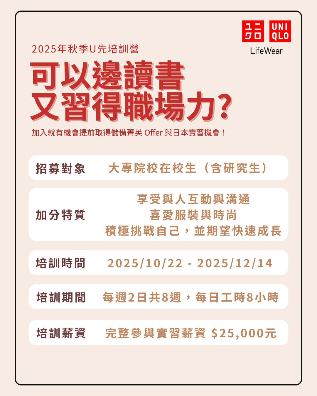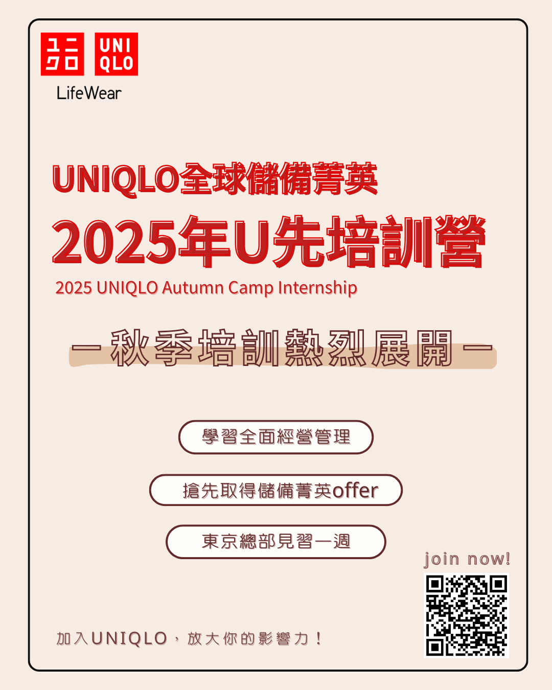 🔥限量招募中🔥2025 UNIQLO 全球儲備菁英 秋季U先培訓營