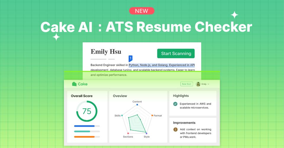 擔心你的履歷被 ATS 默默淘汰嗎?試試 Cake AI:ATS 履歷檢測工具,一鍵提升你的面試機會!