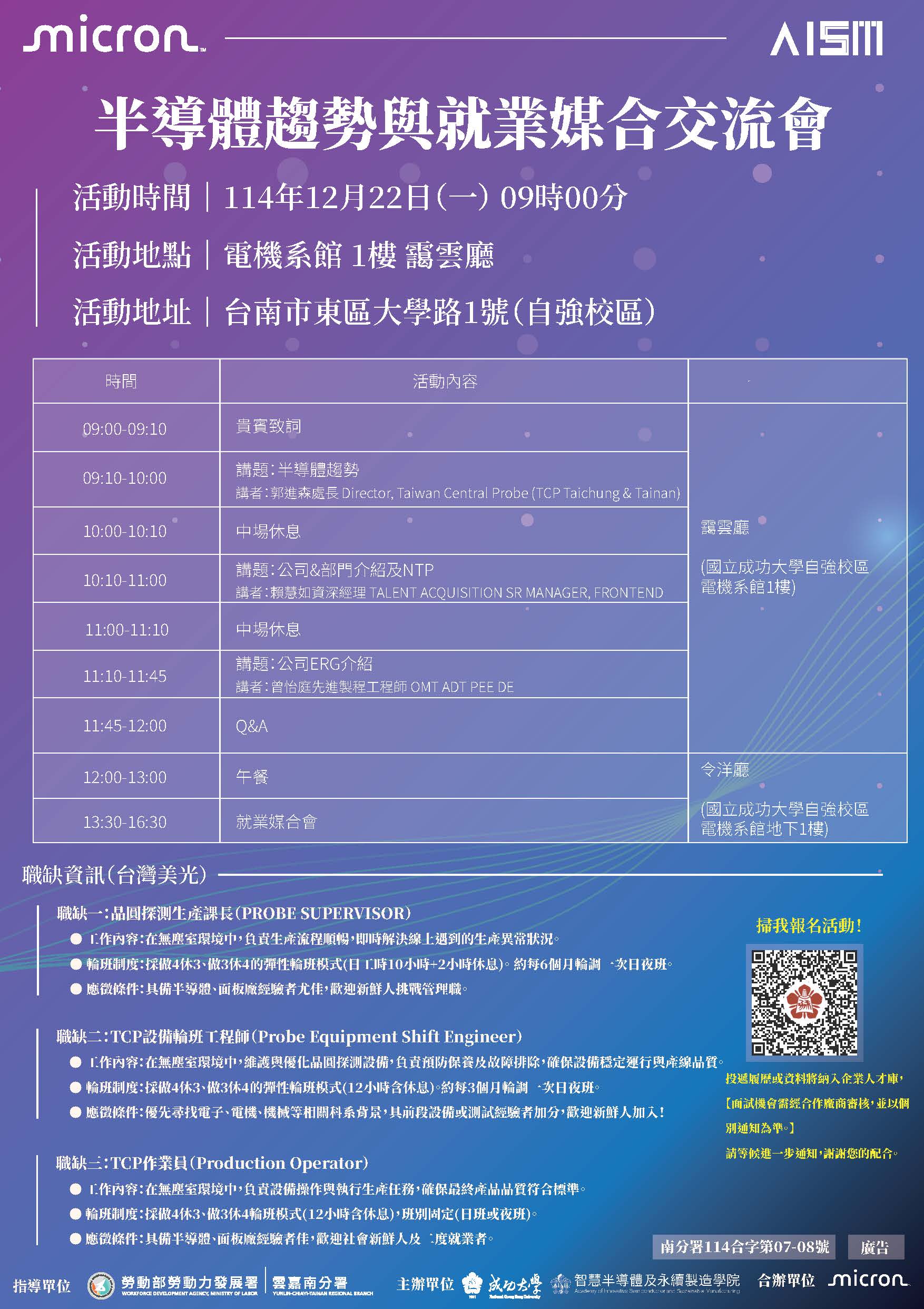 【美光職缺媒合】成大 × 勞動部雲嘉南分署 × 台灣美光Micron_半導體趨勢與就業媒合交流會